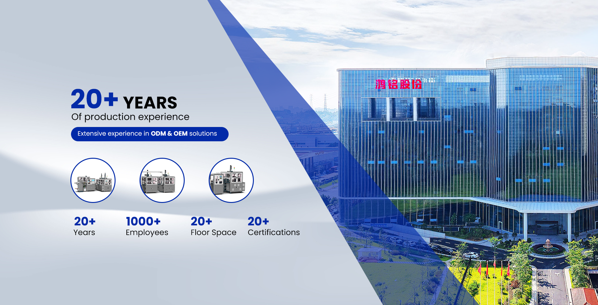Founded in Dongguan, Guangdong, Hongming is a pioneer in the R&D, production, and sales of high-quality rigid box equipment. Listed on the Shenzhen Stock Exchange in 2022 (stock code 301105), we specialize in intelligent rigid box equipment, pulp molding, and cold heading forming equipment. With a factory area of over 130,000 square meters and subsidiaries across China, we serve customers in over 60 countries and regions worldwide.